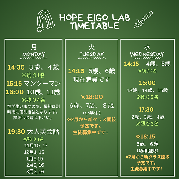 また他の時間帯でも生徒さんが集まるようでしたら開講出来ますので